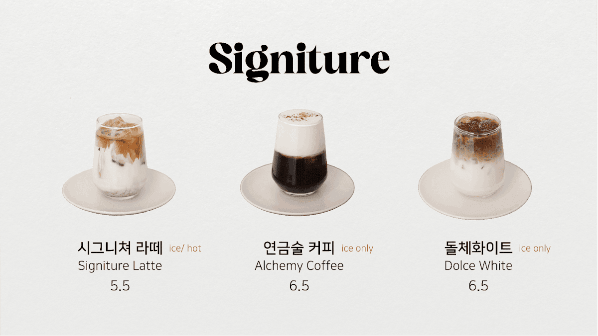 For those craving something savory, the 바질 & 치킨 랩샌드위치 (Basil & Chicken Wrap Sandwich) or the 매콤 치즈 불고기 치아바타 (Spicy Cheese Bulgogi Ciabatta) is a must-try, each under ₩8,000. These dishes expertly balance flavor and freshness, with every bite evoking a sense of comfort reminiscent of home-cooked meals.